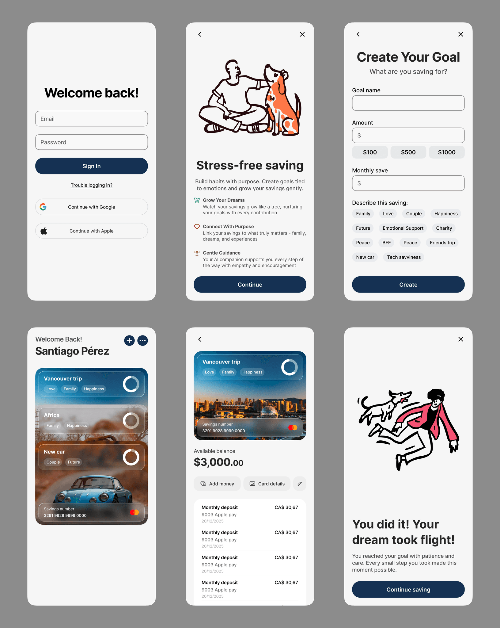 People don’t just save for “$1000” — they save for what that money represents: experiences, relationships, security, or self-improvement.However, existing financial tools rarely reflect that emotional side, making it harder for users to stay engaged and consistent.